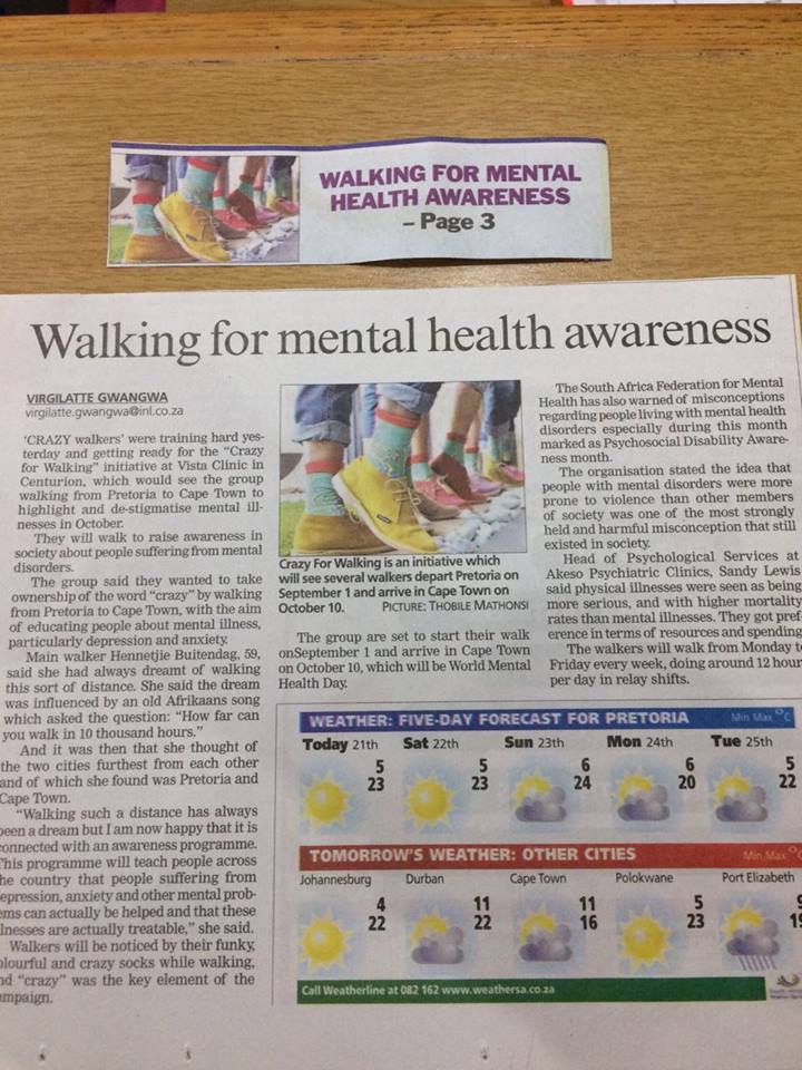 Crazy for Walking in Pretoria News newspaper
